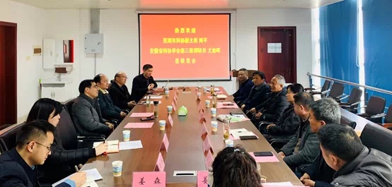 座谈会上,院长徐宝才对闻平主席、尤渝晖调研员一行的到来表示热烈的欢迎。蔡克周教授向来宾介绍了合肥工业大学365电子娱乐官方网站的基本情况,以及学院一直以服务地方科技、经济发展为宗旨所开展的典型工作案例,汇报了“科创安徽”绿色食品科技服务团的工作进展。