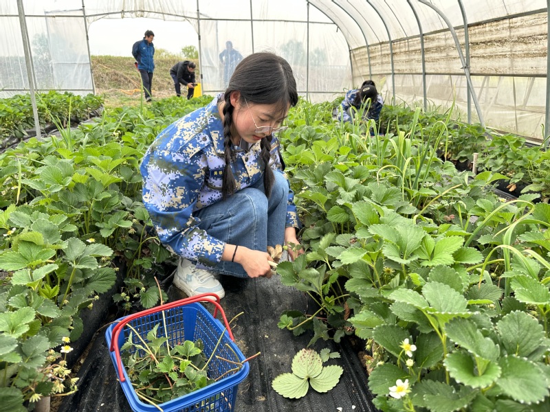 活动伊始,安徽双马生态农业有限公司创始人、我院2012届生物工程专业杰出校友朱硕阳从大学生活规划和创业经历两个方面给大家做了精彩的经验分享,他的勤奋踏实以及服务“乡村振兴”的精神感染了在场的每一位同学。随后,在场的同学从大学生初期目标确定、职业规划、创业流程、获取市场需求资讯等方面跟朱硕阳校友进行互动交流,他耐心解答了同学们的疑问,对大家提出了宝贵的意见。努尔比耶姆·麦麦提代表学院感谢朱硕阳对学院工作的支持和对学生的指导,并鼓励同学们向朱硕阳优秀校友学习,在劳动中磨砺意志。随后,同学们前往农田开展草莓育苗、清理树枝、捡药草、喂山羊等四项活动。草莓育苗活动中,同学们了解了草莓培育的过程和要求,短短二十分钟后,同学们便汗流浃背,深深意识到“锄禾日当午,汗滴禾下土”劳作的不易;捡树枝活动以分为两个小组比赛的形式开展,同学们协同合作,形成流水线式作业,奋勇争先,落后的小组需要唱校歌,比赛在歌声中结束;捡药草过程中,同学们边讨论药草的药物价值和成长条件,边细心地从众多杂草中挑出药草,纷纷表示对制药行业一线工作者更加敬佩;在最后的喂山羊环节,同学们似乎忘却了一切的烦恼,脸上洋溢着满足和幸福的笑容,开心地和山羊互动,尽情享受劳动带来的快乐。