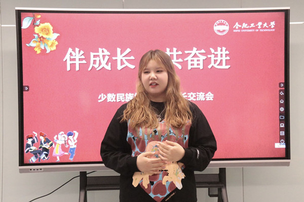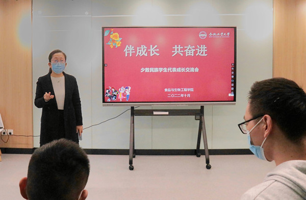 随后,2020级制药工程专业布祖然木·吐鲁汗江和食品质量与安全专业冶建文两位优秀少数民族学生代表围绕理想信念、学业规划、职业生涯规划、勇担责任等方面为同学们做了风采展示与经验分享。交流座谈环节,同学们敞开心扉、畅所欲言,围绕个人学习、未来规划、课余时间安排等方面展开交流。经验交流不仅拉近了学生之间的距离,还为学生提供宝贵的学习经验。大家纷纷表示,要珍惜学习机会,增强本领,敢于担当,肩负起青年一代的使命和担当。