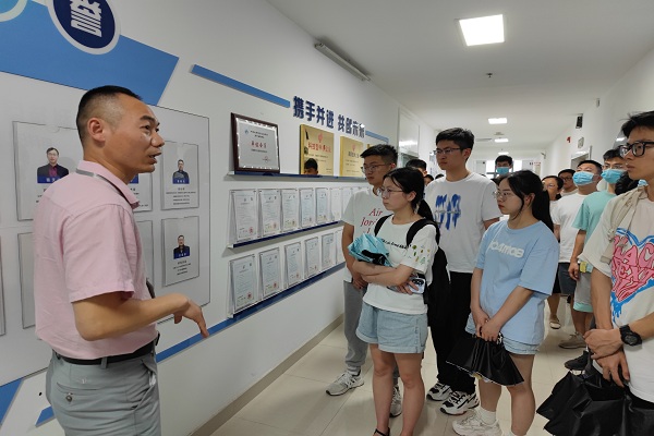 期间,在公司实验中心技术骨干刘亮亮的带领下,学院师生一行参观了公司的文化走廊、实验室。