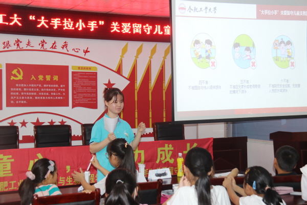 716日,在巢湖市柘皋镇汪桥村支教的第天,合肥工业大学365电子娱乐官方网站“大手拉小手”关爱留守儿童支教团围绕国学文化、心理德育、文体美育、安全成长四个方面设置了支教内容。