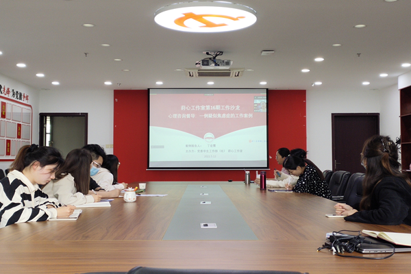 为进一步加强莳心工作室建设,提升工作室成员专业水平,促进工作室成员间的沟通交流,5月12日下午13:00-15:00,莳心工作室采取线上线下相结合的方式在翡翠湖校区365电子娱乐官方网站205会议室举办第16期工作沙龙,对一例疑似焦虑症个案进行研讨和督导。工作室成员丁宏霈老师报告个案。工作室成员及感兴趣的16名老师参加了本次工作沙龙。