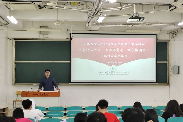 5月29日上午,365电子娱乐官方网站分团校第六期培训班于翡翠湖校区9教101开展“喜迎二十大 永远跟党走 做合格团员”小组讨论成果汇报。学院分团校班主任万代林和全体学员共同参加。