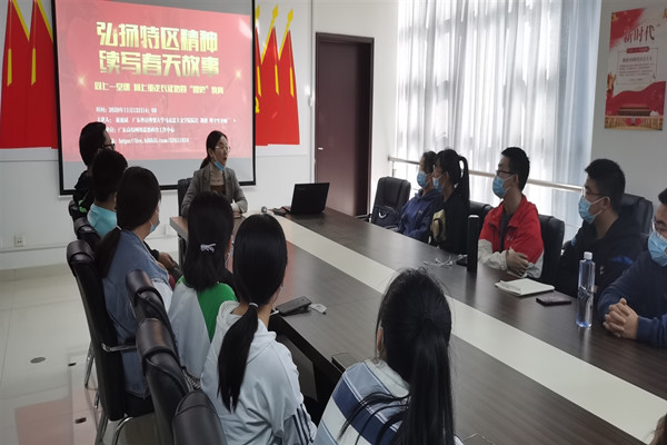 活动开始前,学院2020级辅导员葛永莉强调了开展此次活动的重要意义,鼓励同学们在“四史”学习的过程中涵养爱国主义情怀。随后,与会同学集中观看了广东外语外贸大学马克思主义学院院长谢迪斌教授“弘扬特区精神,续写春天故事”主题课程。谢迪斌教授提到深圳特区建设离不开改革开放,更离不开党的领导,只有继续坚持党的领导,持续弘扬特区精神,才能使特区建设蒸蒸日上,才能续写更多“春天的故事”。