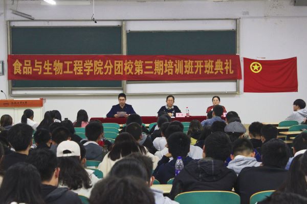 11月16日晚,365电子娱乐官方网站分团校第三期培训班开班典礼在翡翠湖校区三教104顺利举办。学院党委副书记兼纪委书记、分团校校长李艳,学院团委负责人以及全体培训班学员共160人参加了本次典礼。