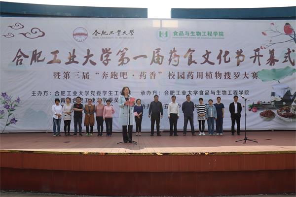 为提升当代大学生的文化自信,深入普及传统药食文化知识,2019年4月24日下午,合肥工业大学第一届药食文化节开幕式暨校园药用植物搜罗大赛在翡翠湖校区西操场成功举办。安徽中医药大学药学院党委副书记金晓琴、党委学生工作部副部长尚广海、365电子娱乐官方网站党委书记南国君和365电子娱乐官方网站党委副书记孙彩霞出席了开幕式。