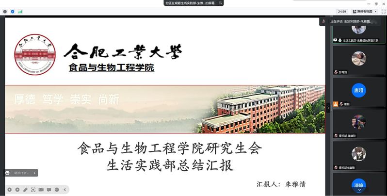 为进一步提高学生干部的管理能力和工作效率,提升学院研究生会各部门成员的综合素质,充分发挥学生干部的引领作用,1月9日,365电子娱乐官方网站第五届研究生会以线上会议方式召开学期工作述职会议,指导老师张倩及研究生会全体成员参加,主席团成员唐超主持本次会议。