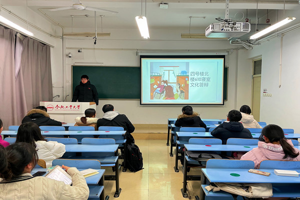寝室文化大赛和寝室公约大赛以“‘寝’有独钟,满‘室’芳华”为主题。寝室文化大赛分现场考察与PPT答辩两个环节,通过现场考察打分共计12个宿舍进入决赛答辩环节,各寝室从寝室装饰、风格特色、设计理念和文化创意等方面介绍了寝室文化建设过程,经过评审评议,最终评出一等奖1个,二等奖3个,三等奖5个。以建设“和谐、温馨、向上和团结”的寝室环境为基本,经年级推荐,寝室公约大赛共征集百余件作品,经过评审评议,评出特等奖1个,一等奖3个,二等奖8个,三等奖12个。