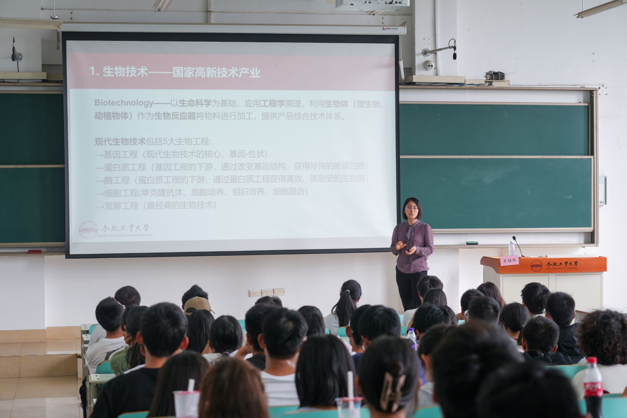 讲座伊始,肖桂然向同学们简单介绍了生物技术专业,并结合自身经历讲述该专业对自己人生发展的帮助。肖桂然从生物技术对社会发展的影响、生命科学的前沿方向和发展前景、科研经历以及研究领域等展开介绍。讲座期间,肖桂然鼓励同学们要夯实专业知识,不断开拓视野,提高创新思维和动手能力,在大学期间,尽早下定决心,明晰目标。最后,肖桂然对全体新生提出了殷切希望和美好祝愿。