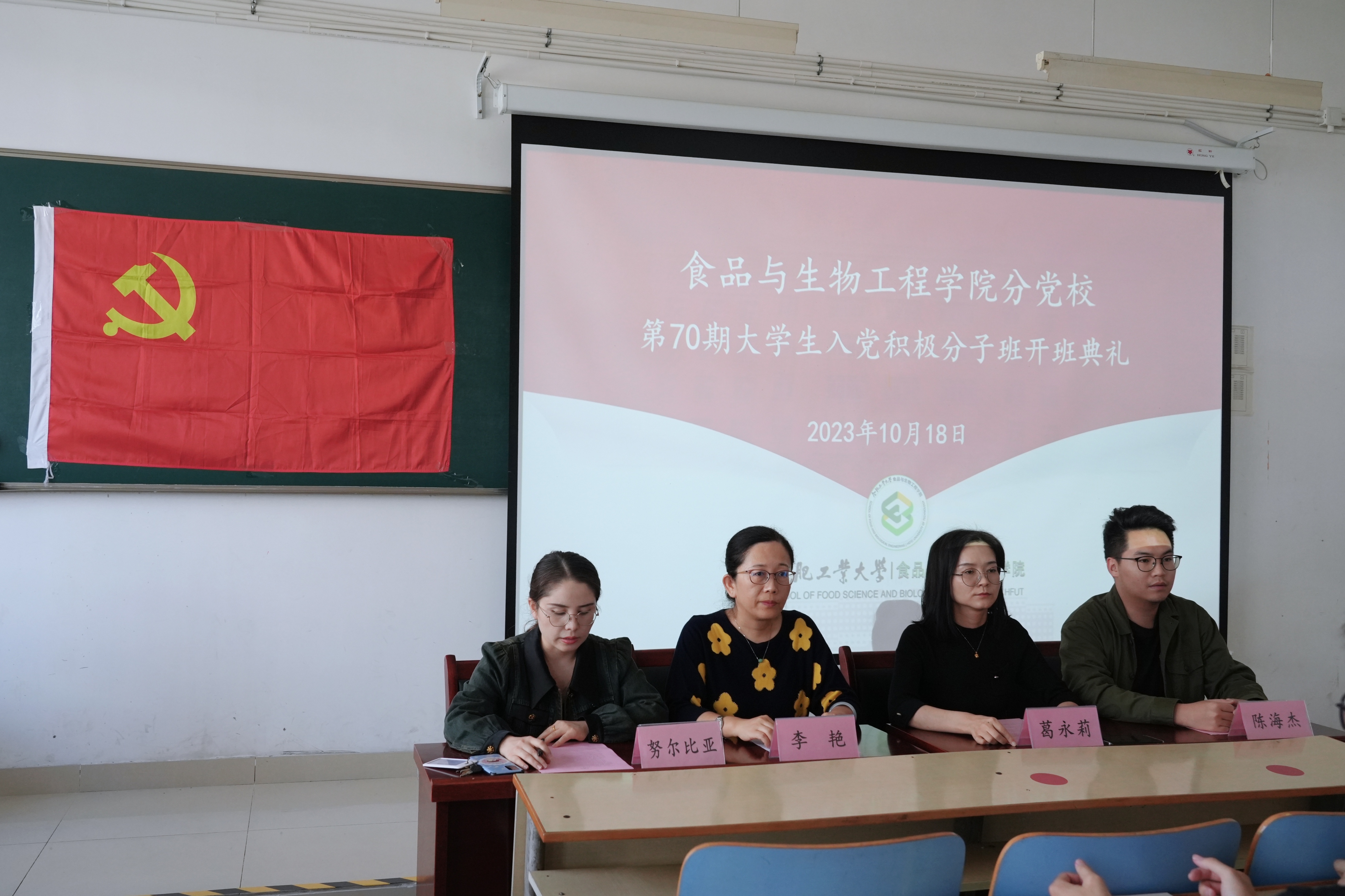 10月18日下午14:00,365电子娱乐官方网站第70期入党积极分子培训班开班典礼于翡翠湖校区十一教306隆重举行。学院党委副书记兼纪委书记、分党校副校长李艳,学院团委副书记葛永莉、学生会秘书长陈海杰以及第70期入党积极分子班全体学员参加了开班仪式。第70期入党积极分子培训班班主任努尔比耶姆主持开班典礼。