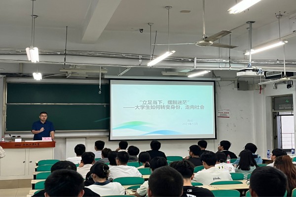 周侃以“大学生如何转变身份,走向社会——立足当下,摆脱迷茫”为主题,从顺利入职一家企业需要具备的条件、职场发展需要哪些素质以及如何度过大学时光等方面进行了深入的探讨。他建议同学们要立足当下,摆脱迷茫,从努力学习专业知识、构建良好的人际关系以及积极参与体育健身活动等方面付诸行动,不断提升自身综合素质,为未来职场生涯奠定坚实的基础。