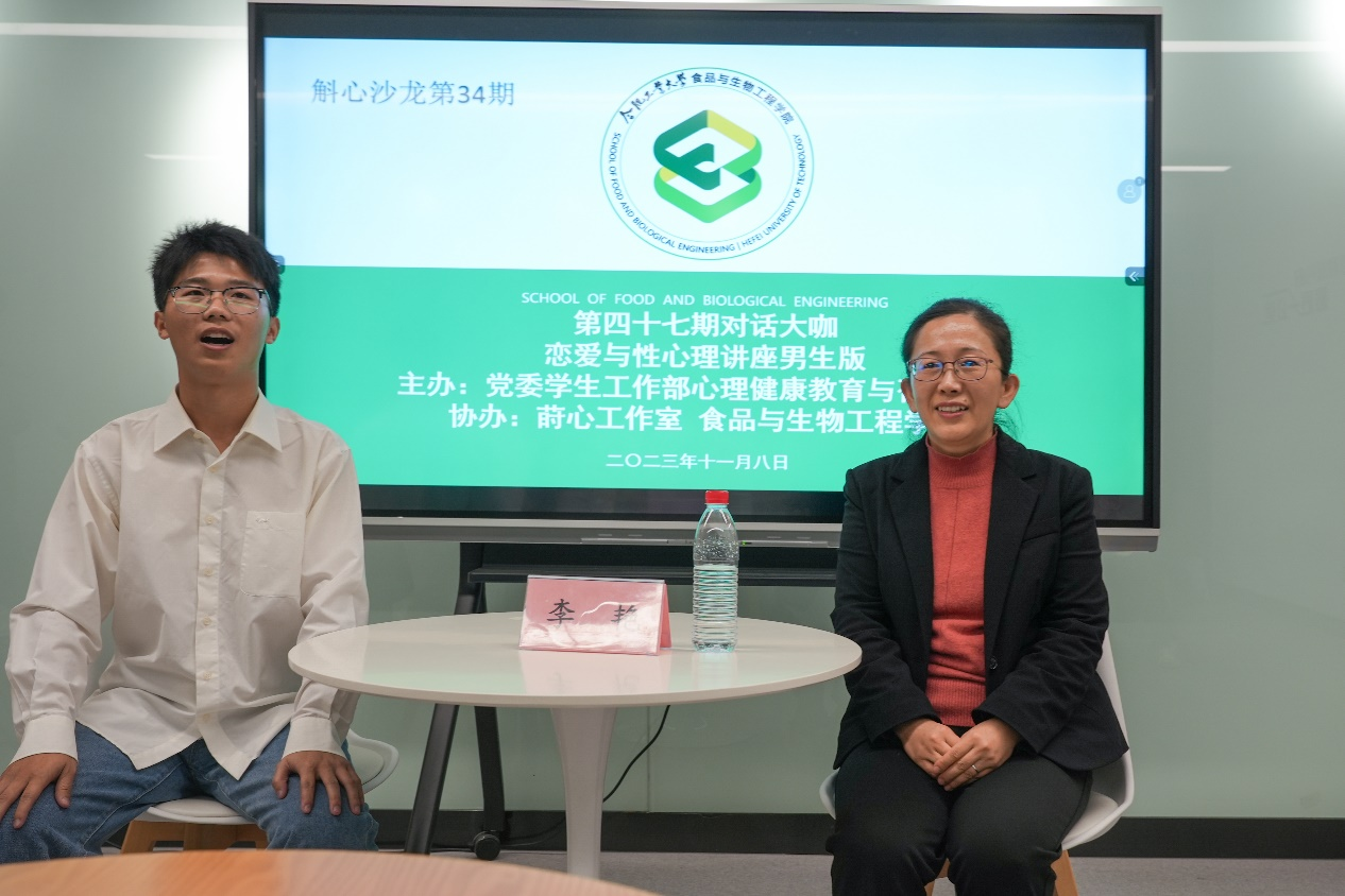 11月8日下午14:00,校党委学生工作部心理健康教育与咨询中心、莳心工作室、365电子娱乐官方网站在二号楼学生社区沙龙空间举办第34期斛心沙龙、第四十七期“对话大咖”活动《跳好爱情双人舞之恋爱与性心理(男生版)》。中国心理学会注册心理师、国家二级心理咨询师李艳担任主讲人,合肥与宣城校区近60名男生线上、线下参加活动。