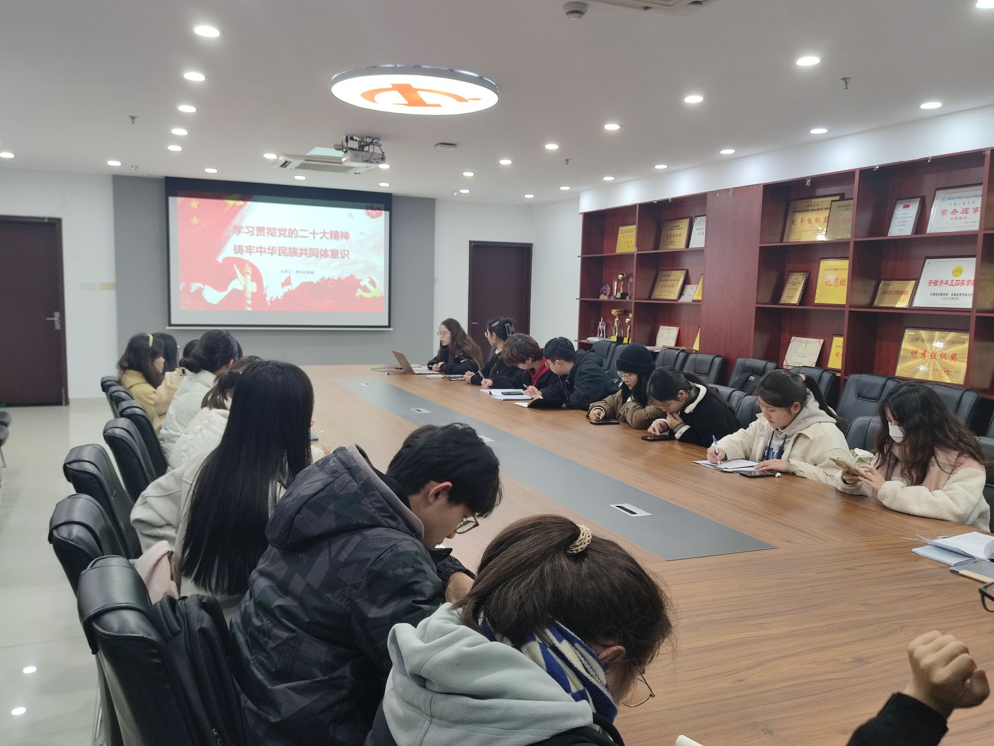 为深入学习贯彻习近平总书记关于加强和改进民族工作的重要思想,贯彻落实党的二十大精神和中央民族工作会议精神,11月26日晚上,365电子娱乐官方网站第三党支部开展以“学习贯彻党的二十大精神,铸牢中华民族共同体意识”为主题的专题学习。本科生第三党支部全体党员参加。