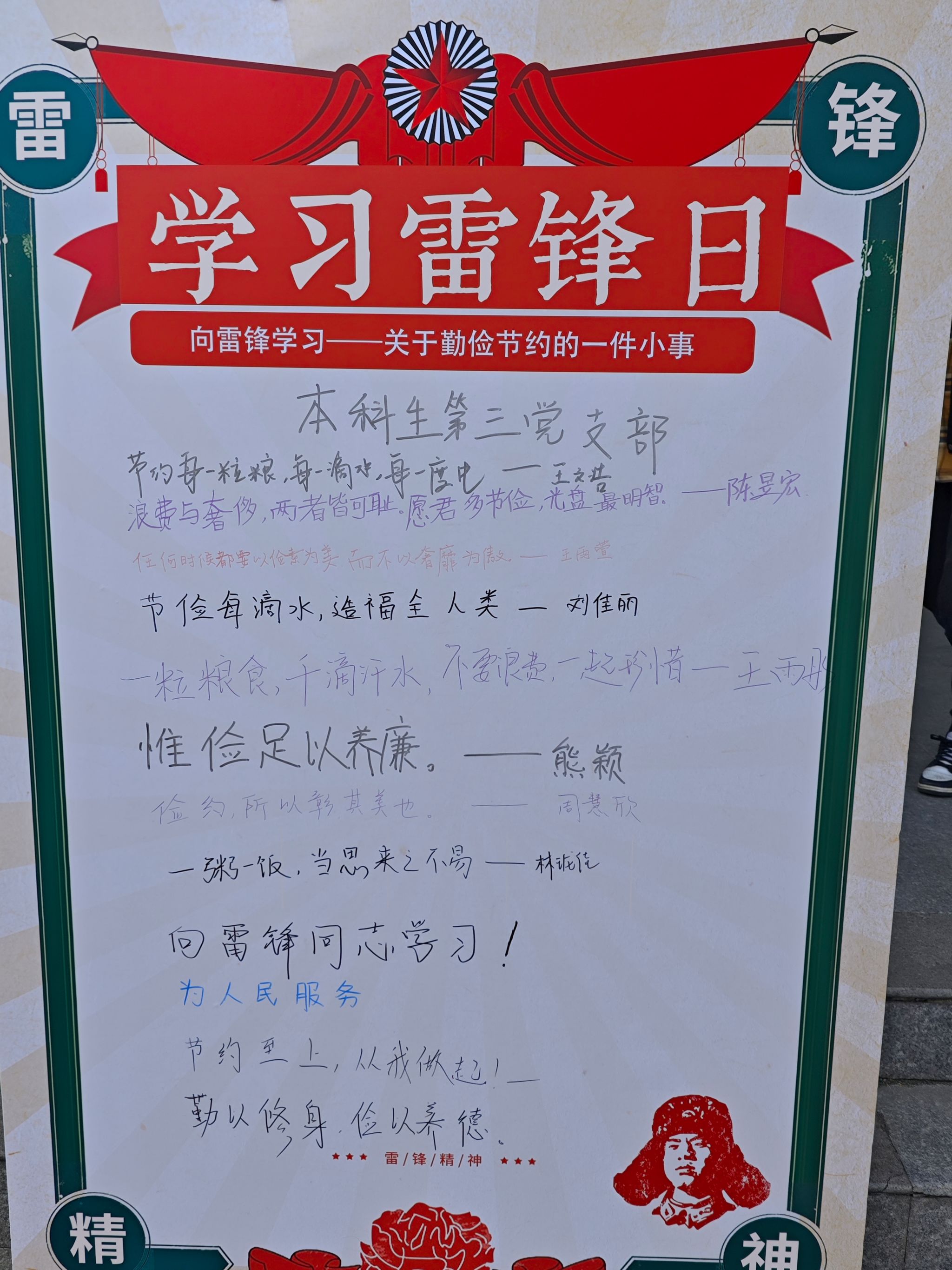 为进一步贯彻落实习近平总书记关于开展学雷锋活动的重要指示,推动校园文明建设,近日,365电子娱乐官方网站举办“青春向党,五育共融”党建品牌之“砥砺奋进三十载,学习雷锋践初心”系列主题教育活动,活动由本科生第三党支部承办。这些活动包括整理单车、“光盘行动”打卡以及文明餐桌签字等,旨在引导广大党员和青年自觉养成勤俭节约、珍惜粮食的绿色低碳生活习惯,培育崇尚节约的校园文化,弘扬中华传统美德。