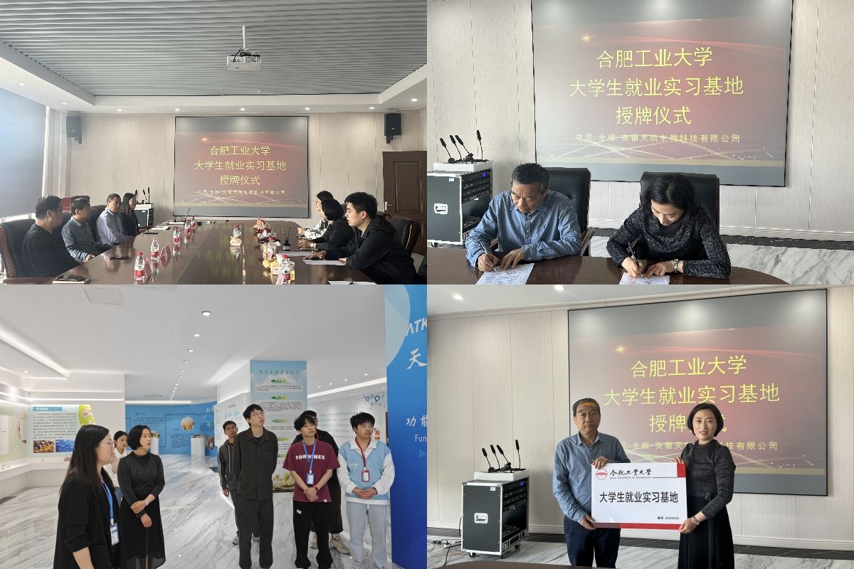 4月23日,365电子娱乐官方网站食品生物技术系主任杨柳、青年教师徐斐然等师生一行5人,前往安徽天凯生物科技有限公司开展访企拓岗促就业工作,并举行共建就业实习基地签约授牌仪式。安徽天凯生物科技有限公司董事长马长宏、公司科技发展顾问闫晓明研究员、公司相关部门负责人员及我院在天凯生物实习的6名大四应届毕业生参加了仪式。
