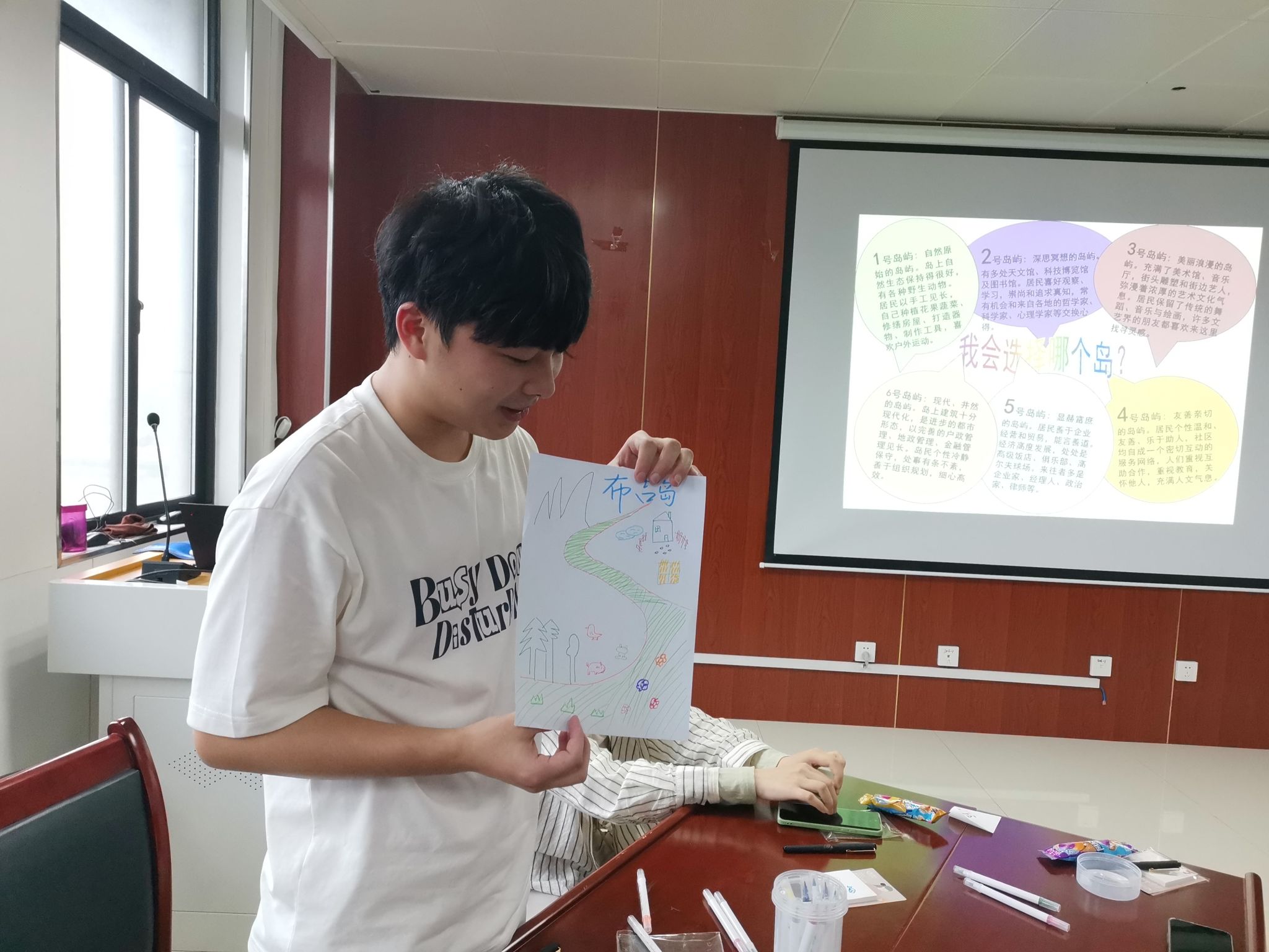 在第二次团体辅导中,张倩引导同学们参加“兴趣岛”活动,展示各自的创意和团队魅力。随后,她运用霍兰德职业兴趣理论中的六角形模型分析“兴趣岛”活动,帮助学生深入了解不同的职业兴趣类型,并结合职业发展周期指导学生尽早明确职业方向。最后,华丽通过MBTI性格测评工具和四个互动测试游戏,帮助学生从不同维度了解自己的性格类型,并分析不同职业和专业中的人格类型分布,促进学生自我认识。