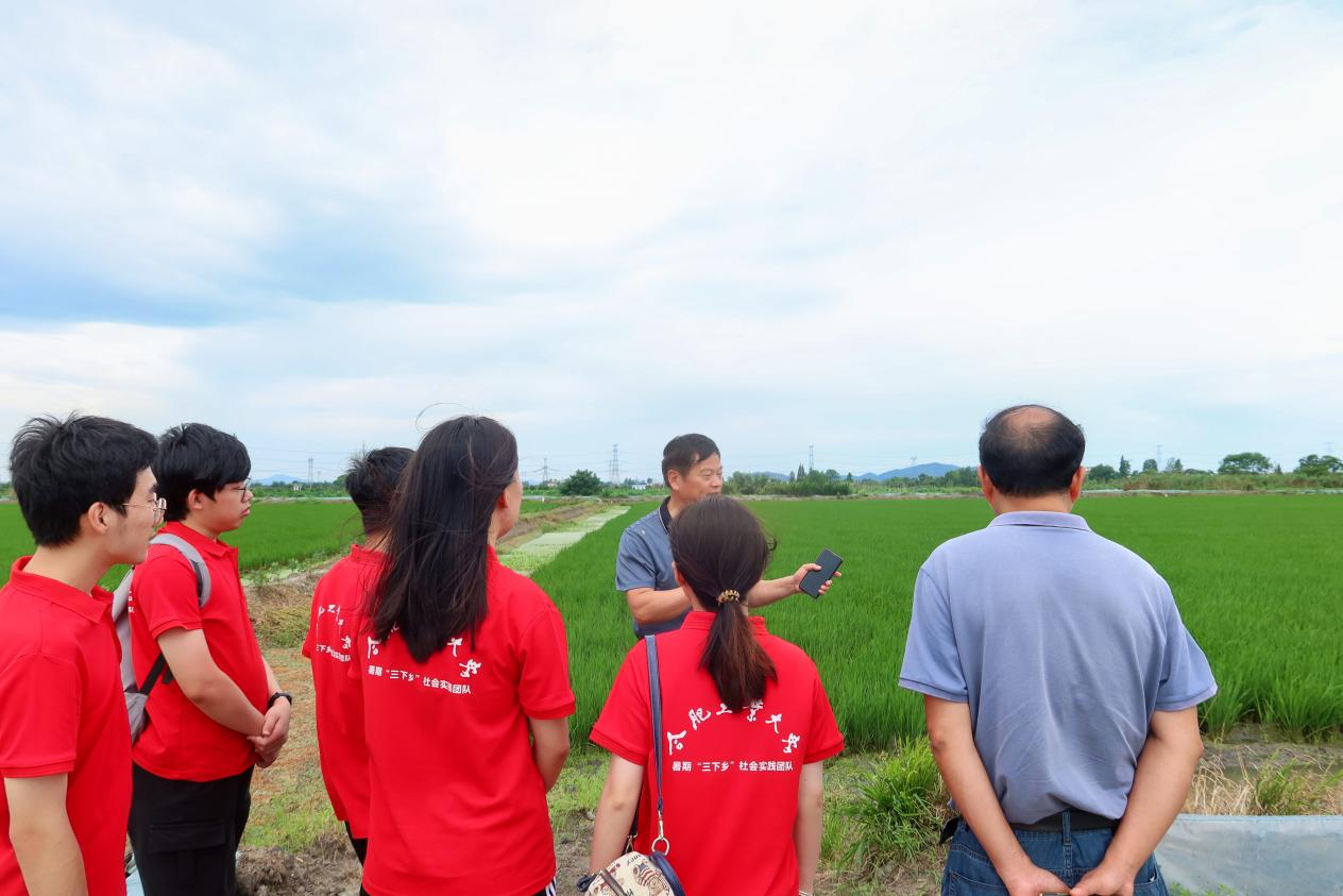 图为无为市渔业管理服务中心高级工程师陈德贵向实践团队介绍“稻虾共养” 中国大学生在线通讯员 石凯烨 供图