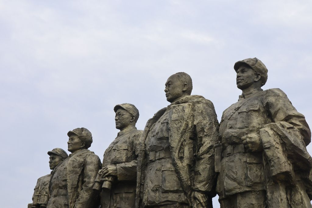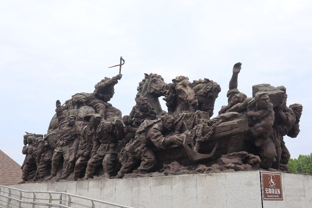 “钟山风雨起苍黄,百万雄师过大江”,渡江战役作为解放战争期间中国人民解放军继战略决战胜利后,对国民党军进行战略追击的第一个战役,在中国人民革命史上谱写了不朽的篇章。在纪念馆正门的“巨型战舰”前,伫立着五位总前委的雕塑,团队成员互相介绍着从左到右依次是粟裕、邓小平、刘伯承、陈毅和谭震林,他们运筹帷幄,决胜千里。站在雕塑前,团队成员们感受到一股镇定自若的力量,仿佛号角即将吹响,胜利就在前方,五位领导人的雕塑,让人心生敬畏、肃然起敬。