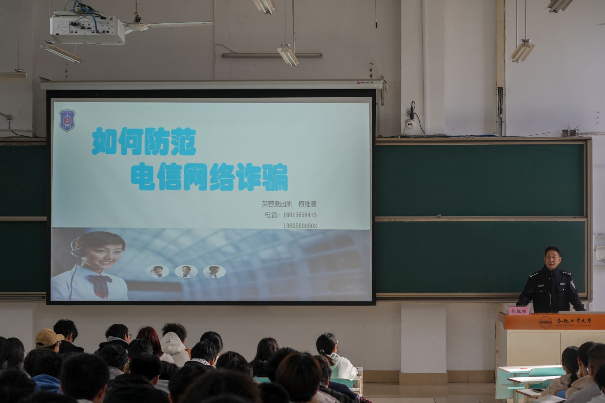 为进一步提高学生的网络电信诈骗识别和防范能力,维护同学们的切身利益,预防各类网络电信诈骗事件,营造和谐平安的校园环境,11月11日上午10:00,365电子娱乐官方网站于翠一教102教室举行主题为“紧绷防范之弦,筑牢安全防线”的防电信诈骗主题宣讲活动。学院特别邀请了合肥市经开区芙蓉派出所何维顺警官作为主讲嘉宾。