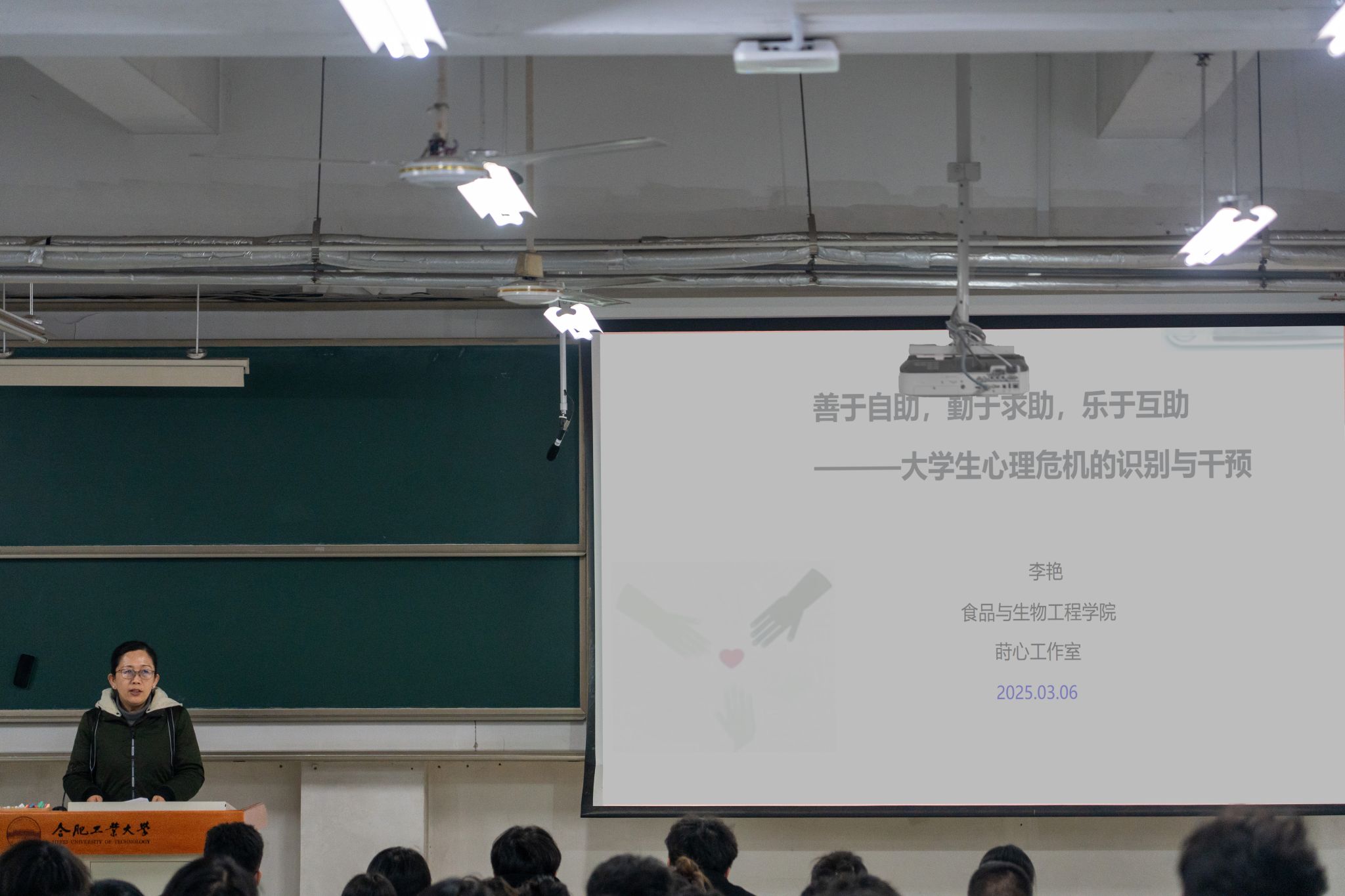 开班仪式结束后,以“大学生心理健康危机的识别与干预”为主题的首场培训正式开讲。李艳担任主讲人,她结合高校工作实际和典型案例,从“心理健康现状”“危机识别要点”“科学干预策略”三个维度展开深度解析。她强调,学生骨干作为“同龄人中的先锋”,需增强责任意识,提升“观察情绪变化、倾听真实需求、及时反馈信息”能力。