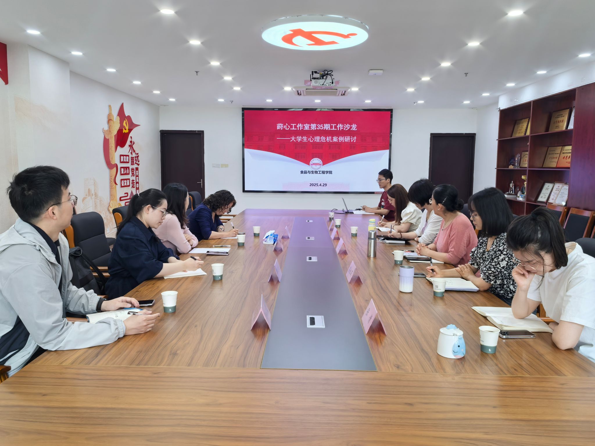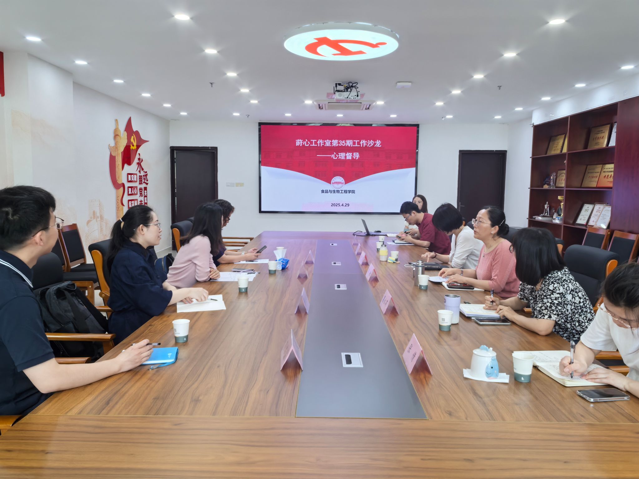 4月29日,365电子娱乐官方网站、莳心工作室在翡翠湖校区365电子娱乐官方网站大楼205会议室,举办第35期工作沙龙。中科大人文与社会科学学院党委副书记王晓燕一行4人参会交流,学院全体辅导员参与,工作室负责人李艳主持工作沙龙。