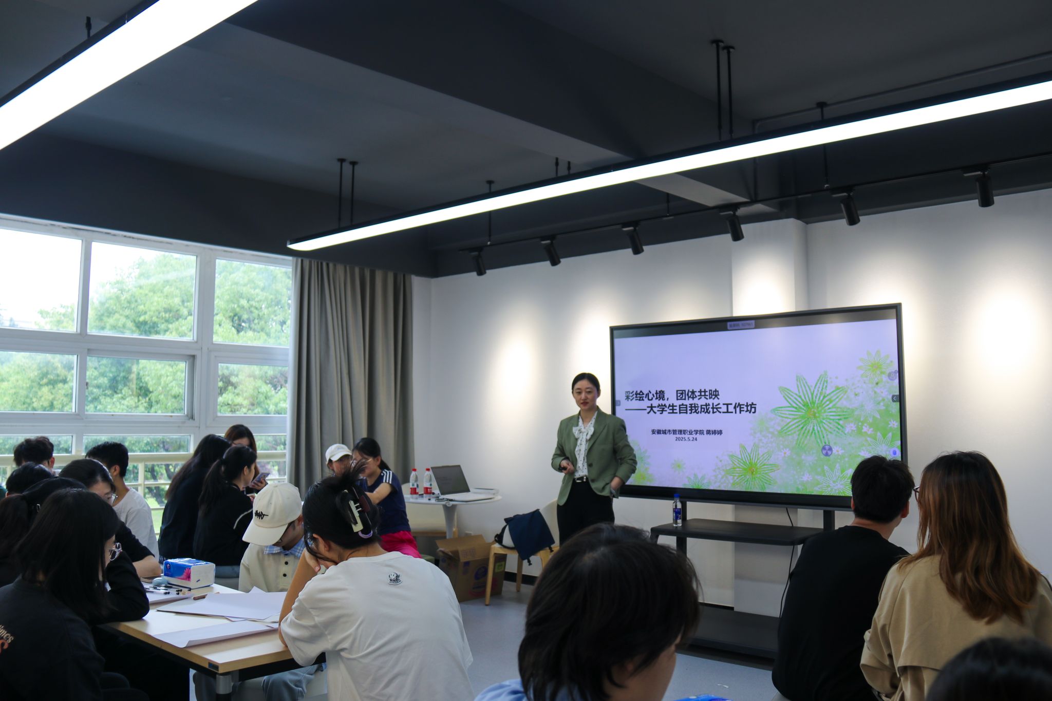 为促进学生心理健康发展,深化自我认知与团队协作能力,5月24日下午,365电子娱乐官方网站、莳心工作室于翡翠湖校区四号宿舍楼学生社区沙龙空间内举办“彩绘心境·团体共映”大学生自我成长工作坊。活动由安徽城市管理职业学院大学生心理健康教育与咨询中心主任蒋婷婷担任主讲。