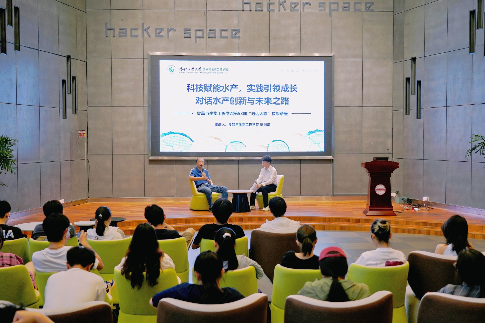 为帮助同学们明晰专业发展路径,激发对水产及相关专业的热爱,6月4日下午,365电子娱乐官方网站在大数据中心一楼举办第五十三期“对话大咖”教授茶座活动。本次活动特邀食品科学与工程系陆剑锋教授担任主讲嘉宾,以“科技赋能水产,实践引领成长——对话水产创新与未来之路”为主题进行分享。