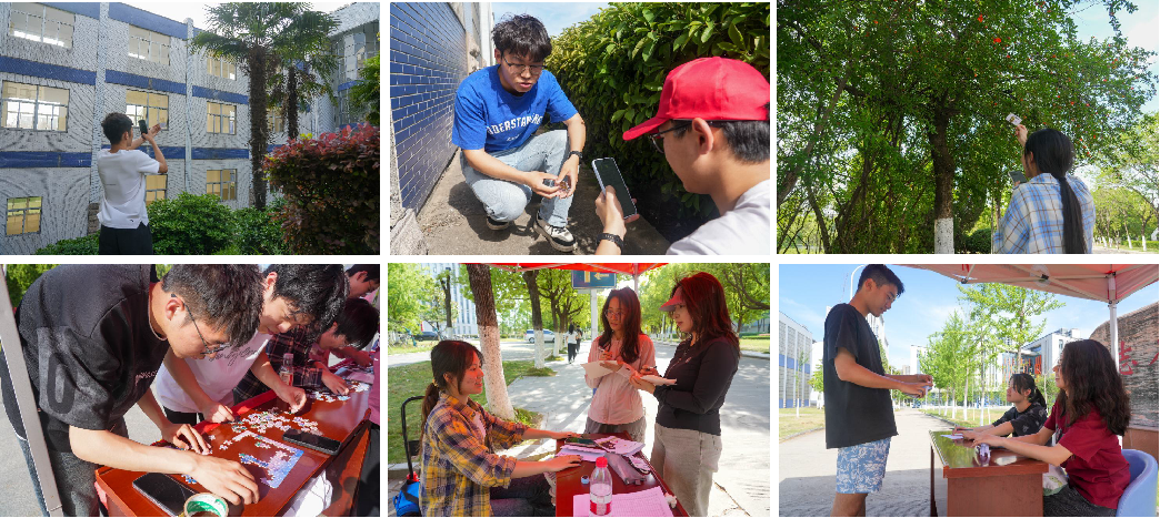 活动设计“任务闯关+沉浸体验”模式,除了给参赛者提供任务卡线索,在校园内搜寻药食同源植物外,还设置“药草连连看”“盲盒识植”“标本创意秀”等特色环节。“任务闯关”中,同学们热情高涨,穿梭于校园各点位,通过拍照打卡、知识问答、创意拼图等方式积累积分。在“药草连连看”等特色项目中,同学们通过趣味互动和创意实践沉浸式感受药食同源文化的魅力。活动现场,365电子娱乐官方网站辅导员栗瑞杰全程指导,详细介绍每种植物的药用价值与历史渊源,为学生答疑解惑。