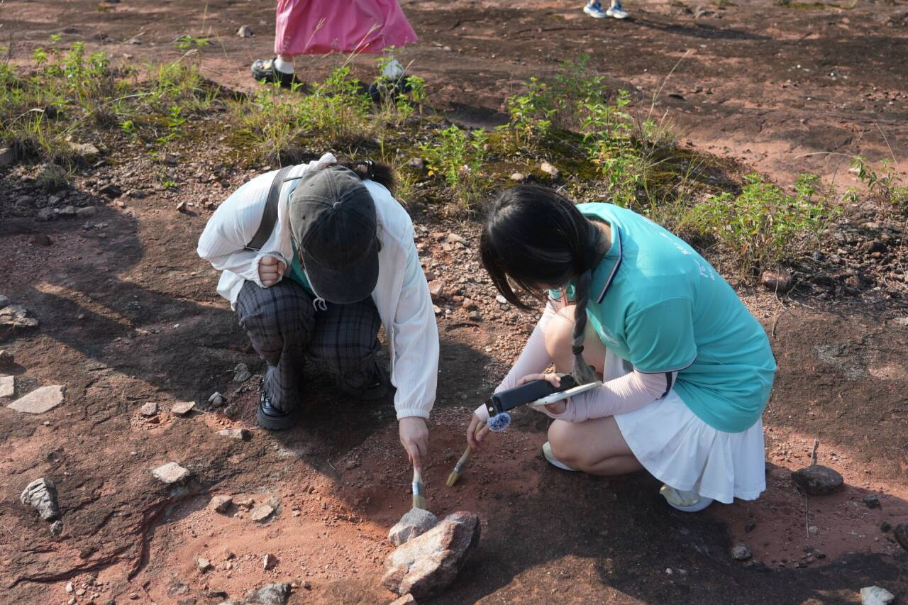 当日上午,团队踏入求知地质文化村。在讲解员的生动解说下,成员们深入了解当地历史脉络与地质变迁历程。随后,大家来到化石挖掘区域,在专家指导下,手持工具开启探索。经过细致挖掘,埋藏地下约6000万年的化石逐渐显露。这些远古遗存承载着地球演化的神秘密码,让成员们直观感受到生命演化的神奇与自然的鬼斧神工。