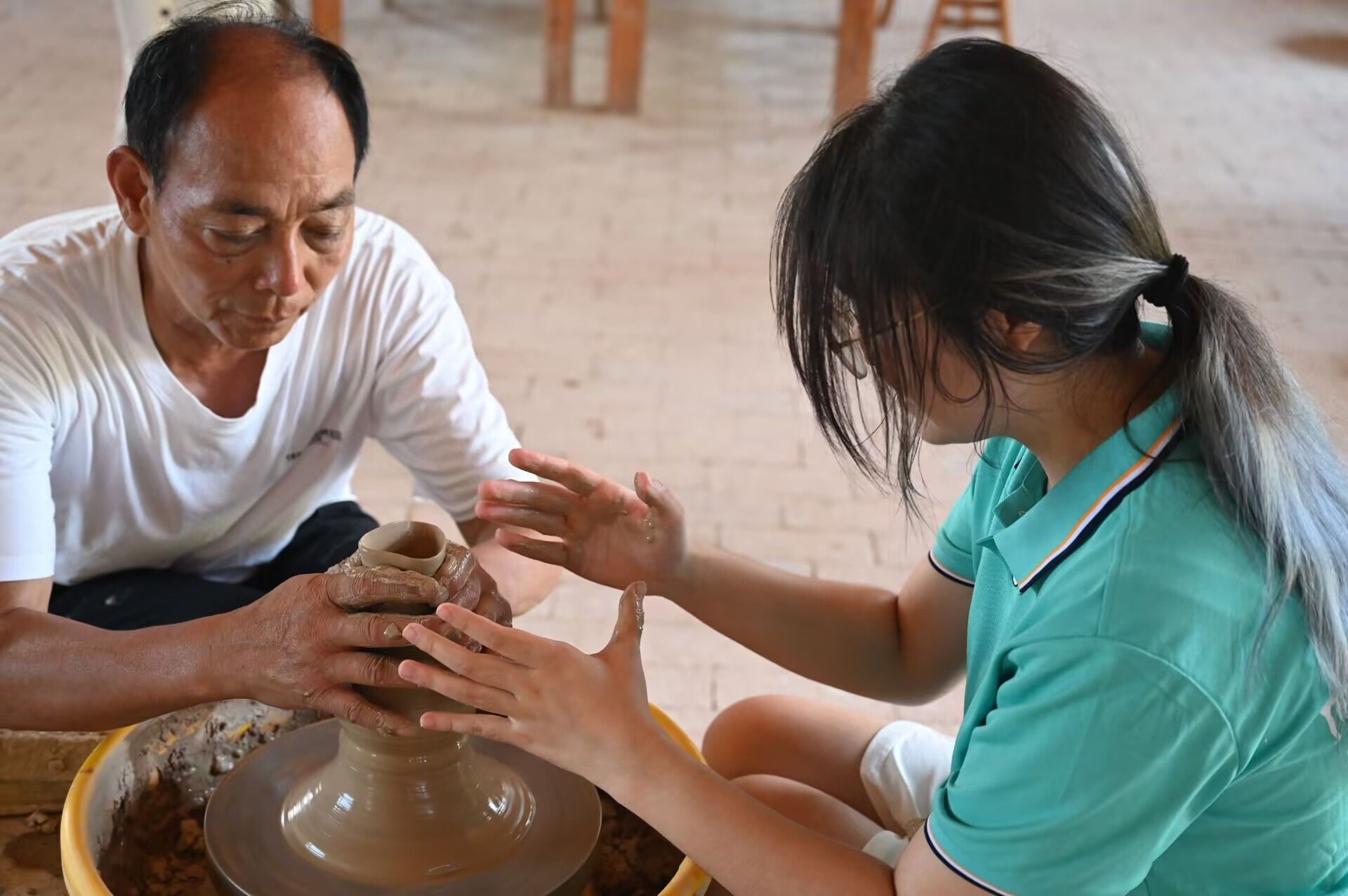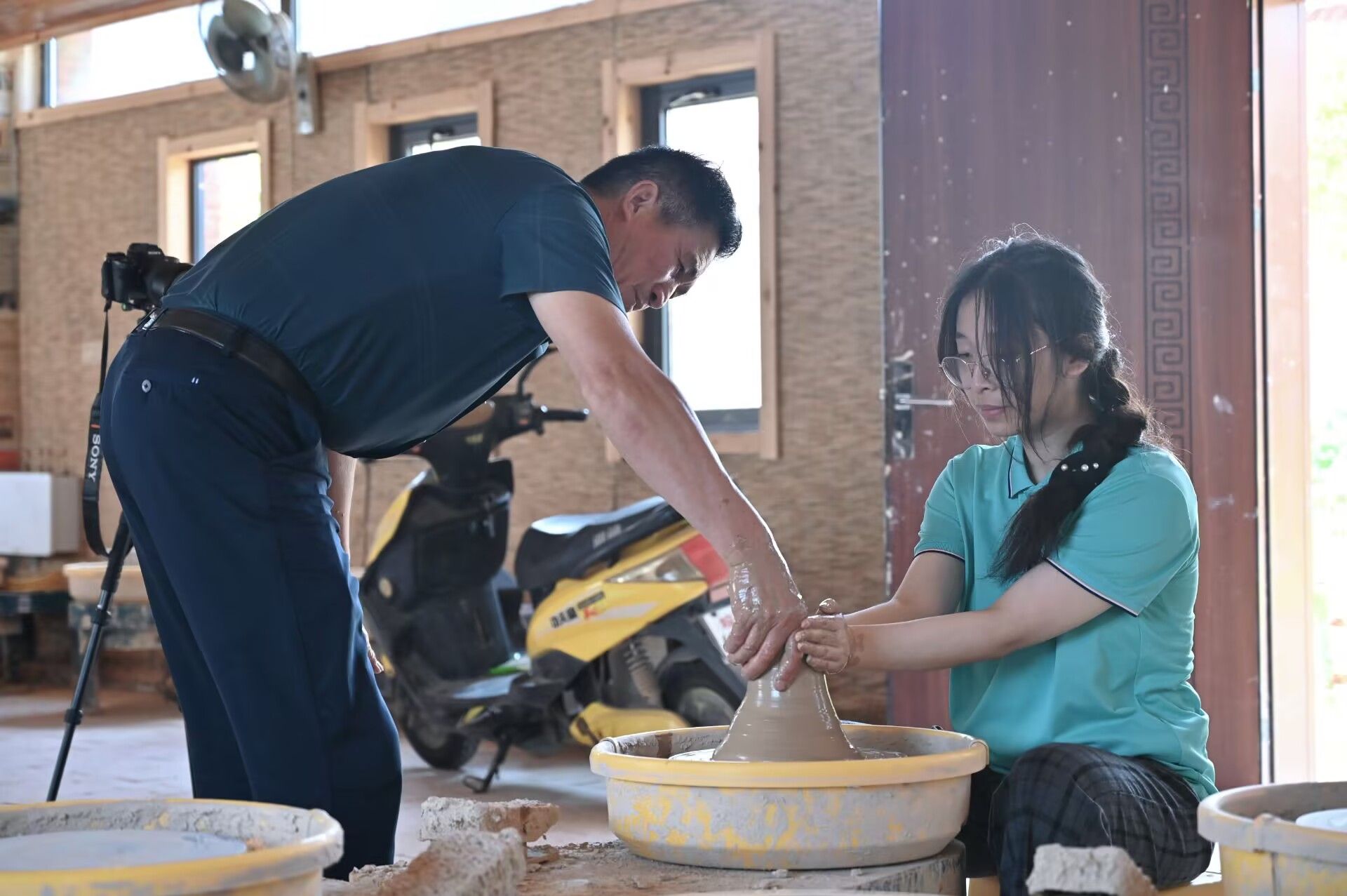 图3团队成员在传承人指导下体验陶艺