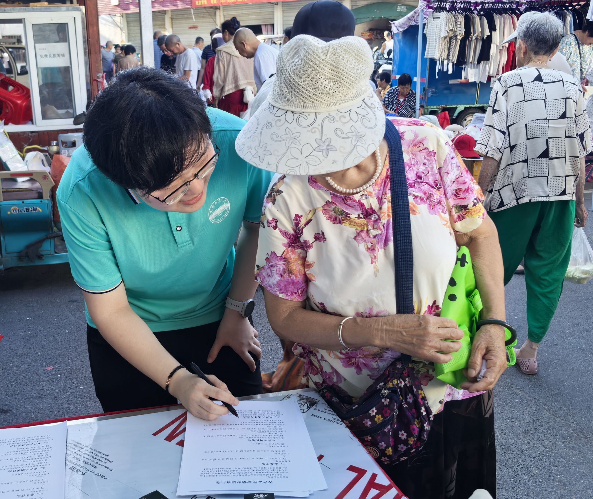 7月8日清晨,团队迎着熹微晨光走进城南菜市场,开启消费终端调研。清晨六点的市集早已人声鼎沸,弥漫着鲜活的市井烟火气。在市场管理部门支持下,团队成员迅速支起调研摊位。细心记录市民对农产品新鲜度、包装偏好、价格敏感度以及对本地特产的认知情况。每完成一份问卷,团队成员便向热心的参与者送上一份精心准备的小礼品,温馨的互动瞬间拉近了彼此距离。这场与“烟火气”的亲密接触,犹如为助农工作装上了精准的“指南针”,从最真实的消费需求端出发,为后续打通产销链路、实现田间好物与市场需求的精准匹配锚定了航向。