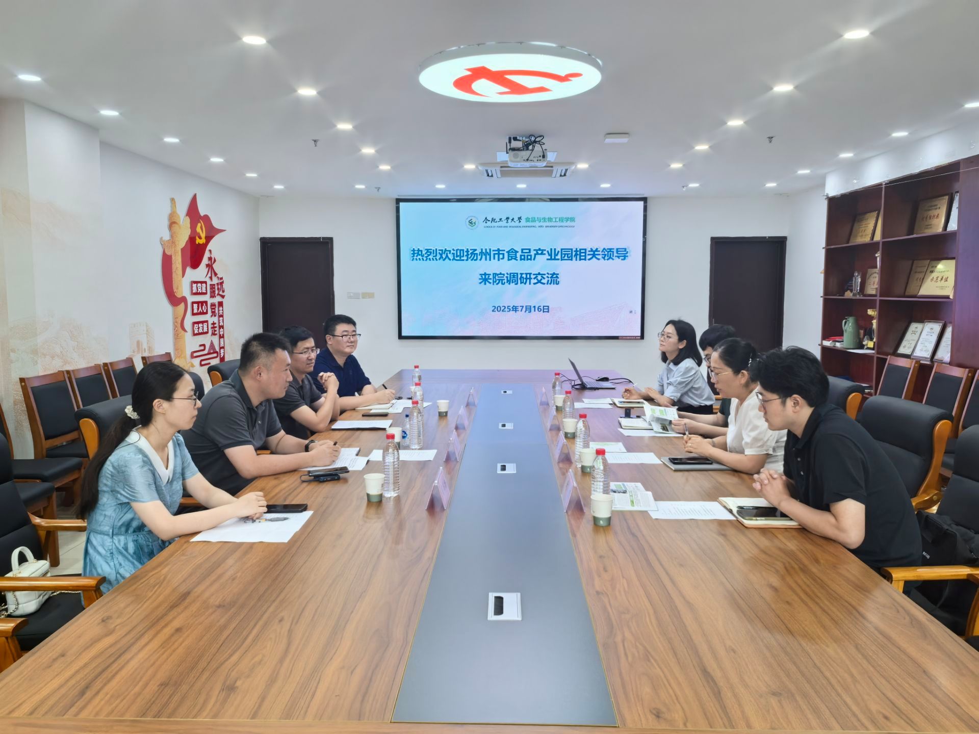 7月16日,扬州市食品产业园来访365电子娱乐官方网站。扬州市食品产业园党委副书记、管理办副主任陈沿明、广陵区组织部干部监督培训科科长荣耀,学院副院长李沛军、党委副书记兼纪委书记李艳、时杰教授等人参加交流座谈。会议由李艳主持。