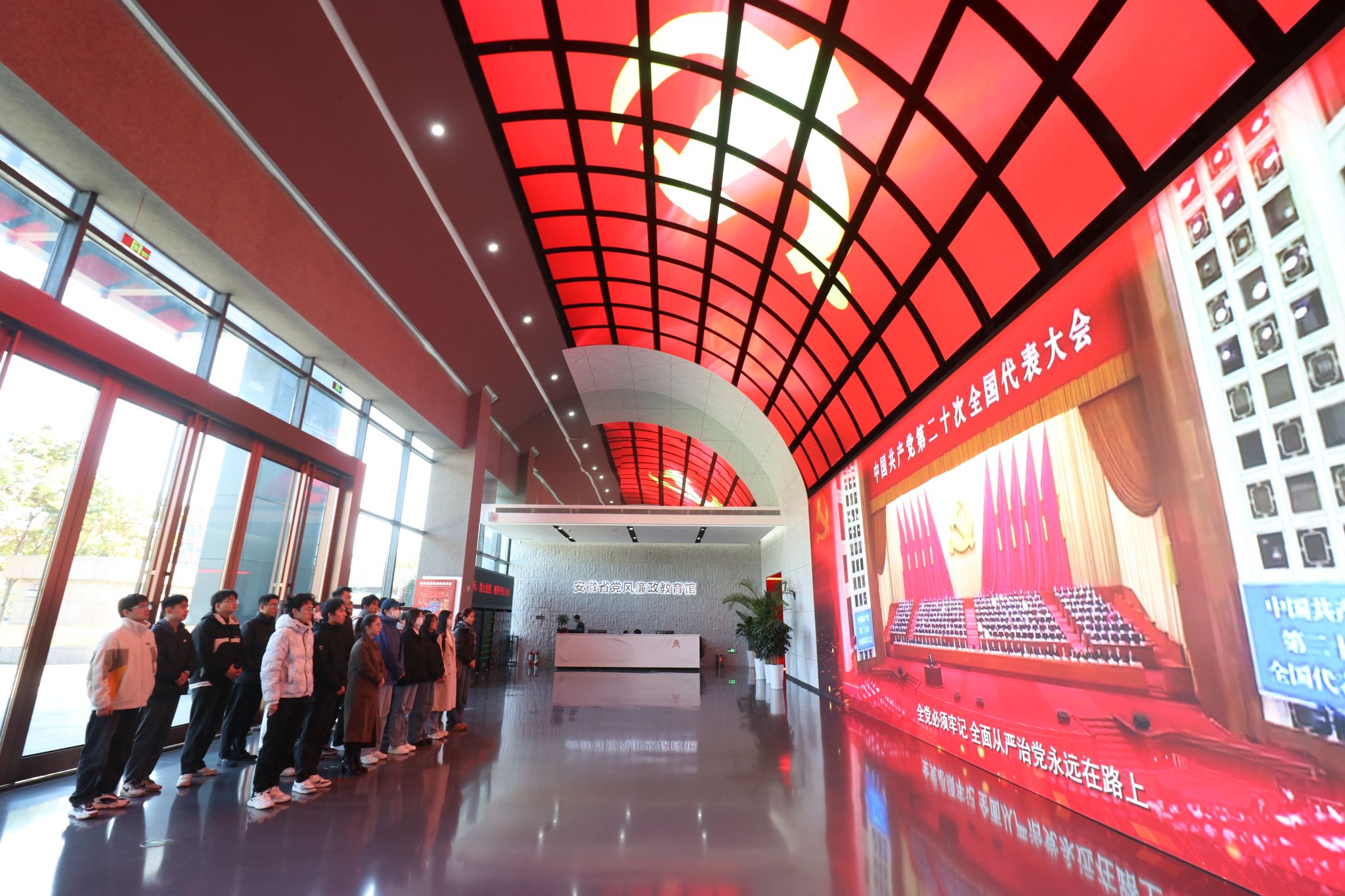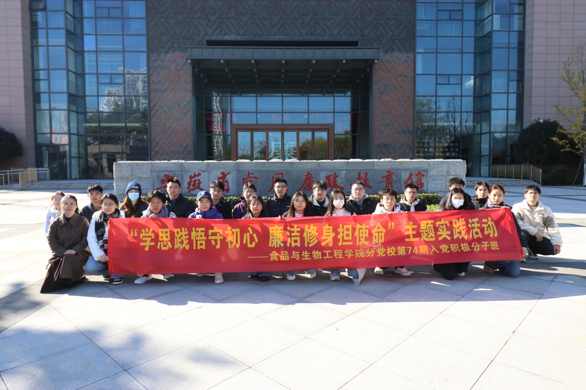 11月19日上午8:50,365电子娱乐官方网站组织第74期党校入党积极分子班学员代表21人在辅导员努尔比耶姆·麦麦提的带领下前往安徽省党风廉政教育馆进行实践学习。