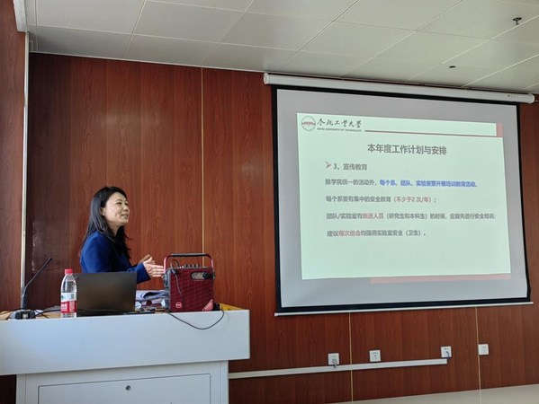 汪惠丽副院长总结了2022年我院实验室安全管理方面的工作,剖析了存在的问题;在此基础上,进一步落实学校-学院-系三级安全管理制度,分别从安全准入、交流培训、宣传教育、安全检查和条件保障五个方面对2023年度验室安全管理工作提出了详细的计划,并进行了具体的安排和部署。随后,工作组副组长甘昌胜老师依据《高等学校实验室安全检查项目表》(2022年)、《合肥工业大学实验室安全责任追究暂行规定》,并结合学院教学科研的实际情况,从基本信息、实验区整体环境、化学品、废弃物、钢瓶、警示标识、消防、用电、设备等方面对学院实验室常见安全隐患和检查要点进行了解读,并对实验室安全检查的改革提出了实施方案。