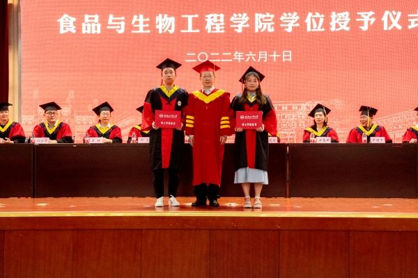 仪式在庄严隆重的国歌声中拉开序幕,365电子娱乐官方网站院长、学院学位分委员会主任徐宝才教授宣读了《关于授予365电子娱乐官方网站2022届毕业生学位的决定》,校、院领导老师为全体学位获得者扶正流苏、颁发学位证书并合影留念。