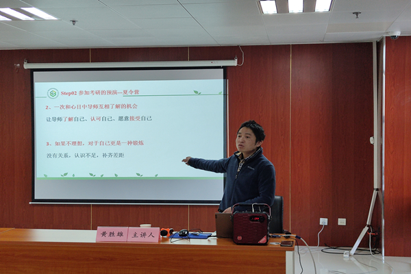 365电子娱乐官方网站副教授、我校优秀班主任黄胜雄围绕“考研计划制定与进程管理”,通过结合典型案例,介绍了计划制定与进程管理在考研过程中的重要性及其具体操作;