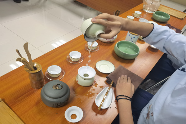 活动伊始,工作室指导老师葛永莉从工作室的申报背景、建设目标和重点工作等方面对“茶道与茶艺”工作室进行介绍,并从工作室所肩负的育人使命出发,提出工作室力求实现“氛围营造、净化心灵、内外兼修”的建设追求。