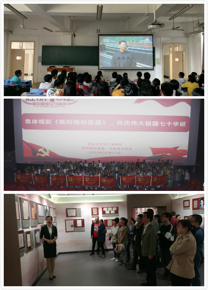 学院党委分批次组织处级领导干部、党委委员、全体师生党员收看庆祝新中国成立70周年大会,观看《我和我的祖国》等爱国主义教育影片,赴安徽省“不忘初心、牢记使命”主题教育档案文献展馆实地接受教育,激励广大党员干部守初心、担使命,把爱国情、报国志融入到学校和学院事业发展中来。
