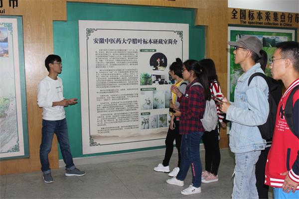 上午10:15分,参与的同学在乘车一同前往安徽中医药大学。在安徽中医药大学校门前合影留念后 ,本次活动正式拉开了帷幕。首先,参加的同学们被分为两组,先后前往科技馆参观,每组配有安徽中医药大学专业人员为同学们进行讲解。