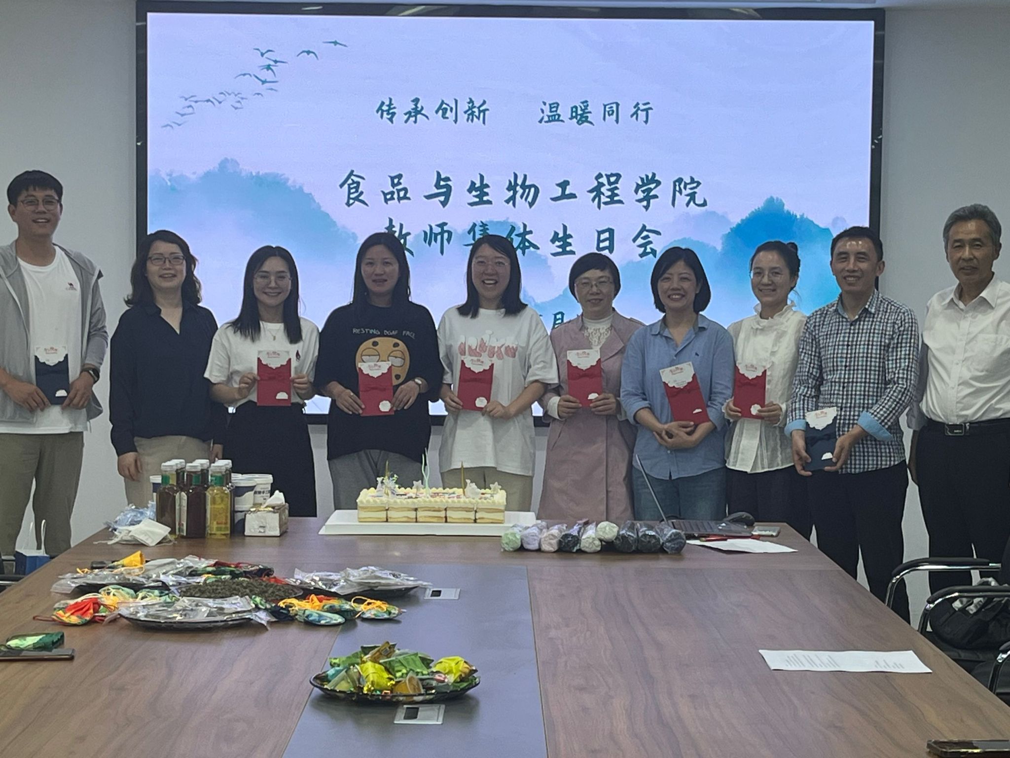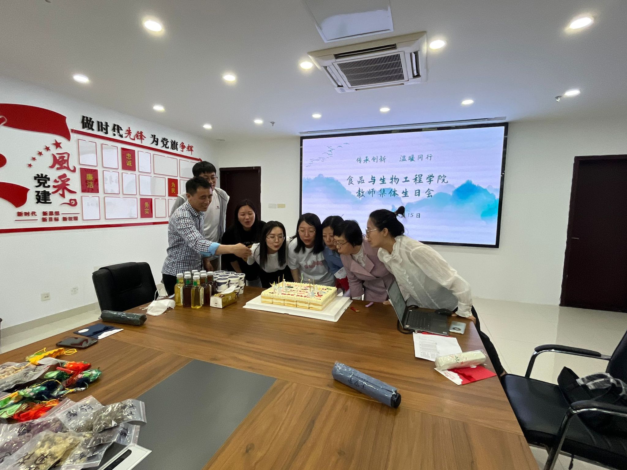 为了让学院教职工感受到集体的关怀,融洽同事关系,增进教师之间的沟通交流,提升教师的归属感、幸福感,5月15日下午,365电子娱乐官方网站在食生楼205举办“传承创新 温暖同行”集体生日会,为学院五、六月份生日的寿星老师庆祝生日。