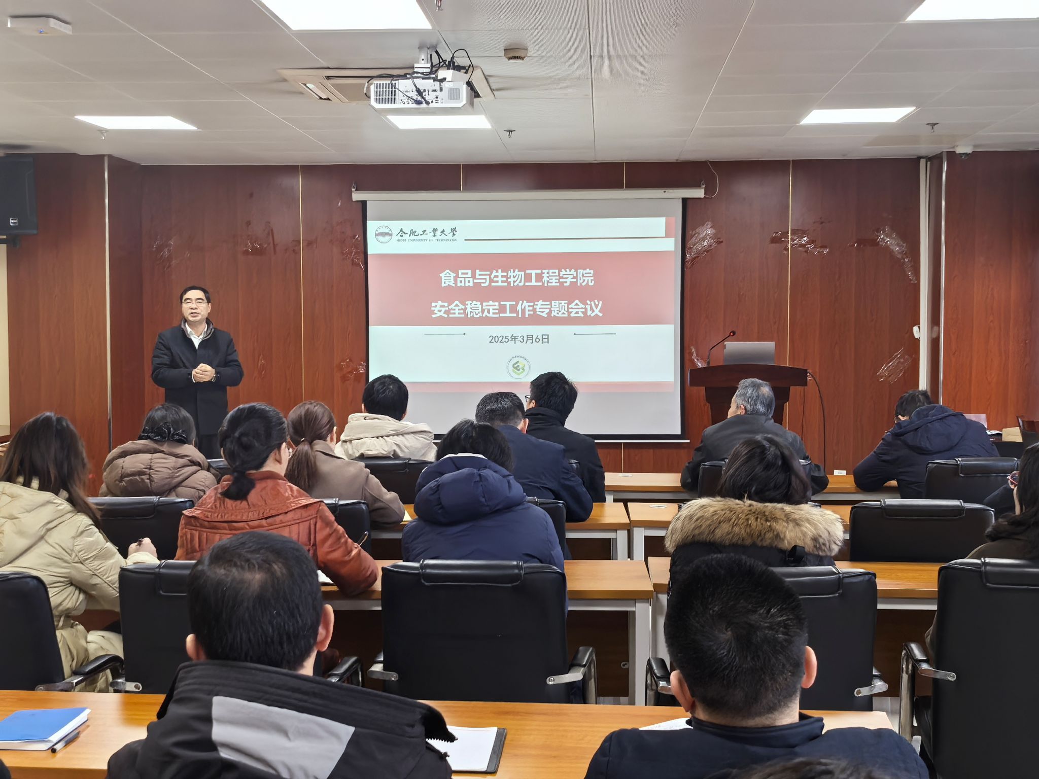 院长徐宝才指出,安全稳定是学院发展的基石,是全体师生共同的责任。他分析了当前安全稳定工作面临的新形势和新任务,并明确提出工作要求:一是提高政治站位和认识,时刻绷紧安全这根弦,树牢安全稳定思想防线;二是强化责任担当,落实“党政同责、一岗双责”,各分管领导要切实加强对分管领域安全工作、意识形态和师德师风的监管,各系(中心)负责人及时向教职工传达会议精神,不折不扣落实到位,形成全员参与、齐抓共管的良好局面;三是定期开展实验室安全检查、学生心理健康排查等,建立风险隐患台账,明确责任人和整改时限,确保隐患及时消除;四是在学院安全稳定的环境下,全体教职工要勇于干事创业,以建设一流学科、培养一流人才为目标,以高度的责任感和使命感投入到教学科研、服务管理中,推进学院高质量发展。