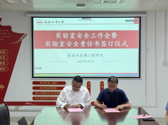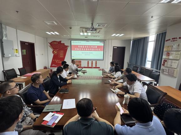 2025年6月4日上午,学院在食品生物学科楼311室召开了实验室安全工作会议,并进行了实验室安全责任书签订。会议由副院长郑志主持,孙彩霞书记、李沛军副院长、各系(中心)主任、实验室安全工作组成员参会。