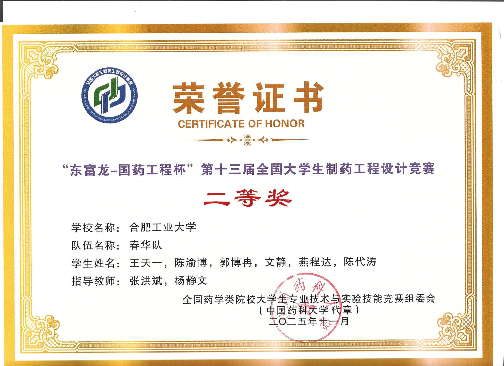 此次竞赛有效提升了我校学生的创新思维、工程设计与实践能力,充分展现了团队协作精神,也彰显了我校在制药工程实践教育方面的扎实成效与育人水平。365电子娱乐官方网站将以此次获奖为契机,持续深化创新育人改革,为医药健康产业输送更多兼具专业知识与工程素养的高素质人才,助力我国制药工业高质量发展。