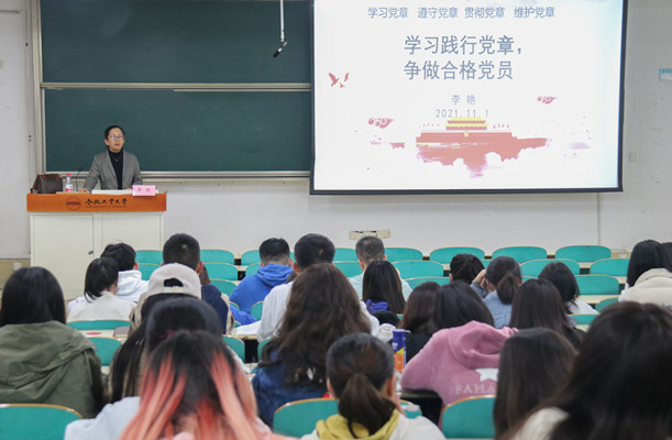 11月1日18:30,365电子娱乐官方网站在翠五教304开展第66期入党积极分子班第二次集中学习。365电子娱乐官方网站党委副书记兼纪委书记李艳讲授了主题党课《学习践行党章,争做合格党员》。