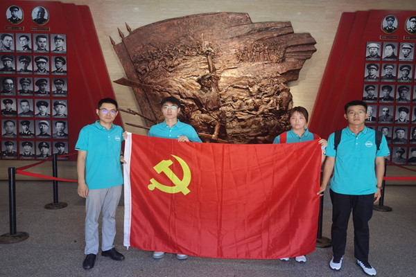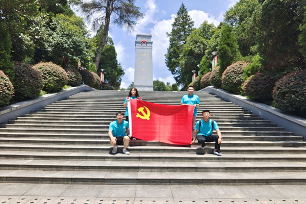 再往里走便是红军纪念堂。进入堂内,正中央便是一座红军作战的古铜色雕塑,而雕塑两侧的墙壁上则是数百位烈士的遗像与他们的姓名。面对一行行烈士名录,队员们不禁肃然起敬。这看似冰冷的文字背后,是先烈们用鲜血为我们铸就的和平盛世。参观调研结束后,队员们面对党旗再次进行了庄严的宣誓,重温了入党誓词,再一次感受到思想的洗礼和升华,更加坚定了爱党、信党、跟党走的理想信念。