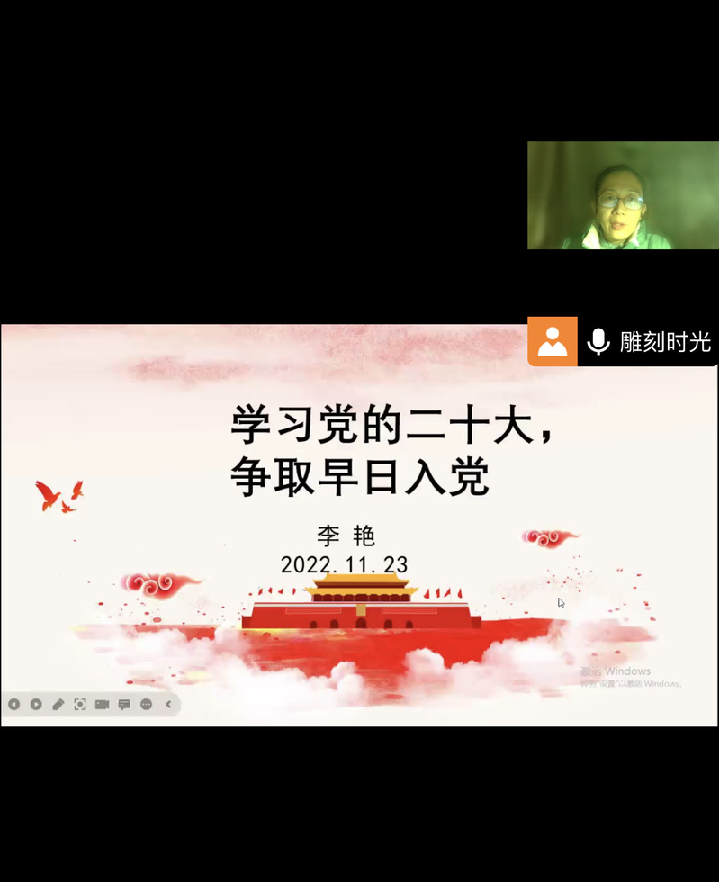 近日,365电子娱乐官方网站第68期入党积极分子班开展第三次集中学习。365电子娱乐官方网站党委副书记、纪委书记李艳以“学习党的二十大,争取早日入党”为题,通过线上的方式讲授党课,引导积极分子班学员端正入党动机,更加坚定永远跟党走的决心。