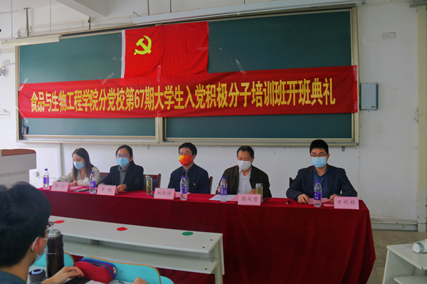 4月6日下午15:00,365电子娱乐官方网站第67期入党积极分子培训班(苗子班)暨第一期食声讲堂开班典礼于翡翠湖校区七教304隆重举行。党委宣传部正处级组织员、学校原党校常务副校长姚跃传,365电子娱乐官方网站党委书记、分党校校长陈从贵,学院党委副书记兼纪委书记、分党校副校长李艳,365电子娱乐官方网站团委书记万代林,以及113名学员参加了开班仪式,其中包括四名因疫情防控暂缓返校的、在线参加开班典礼的学生。第67期入党积极分子培训班班主任努尔比耶姆主持开班典礼。