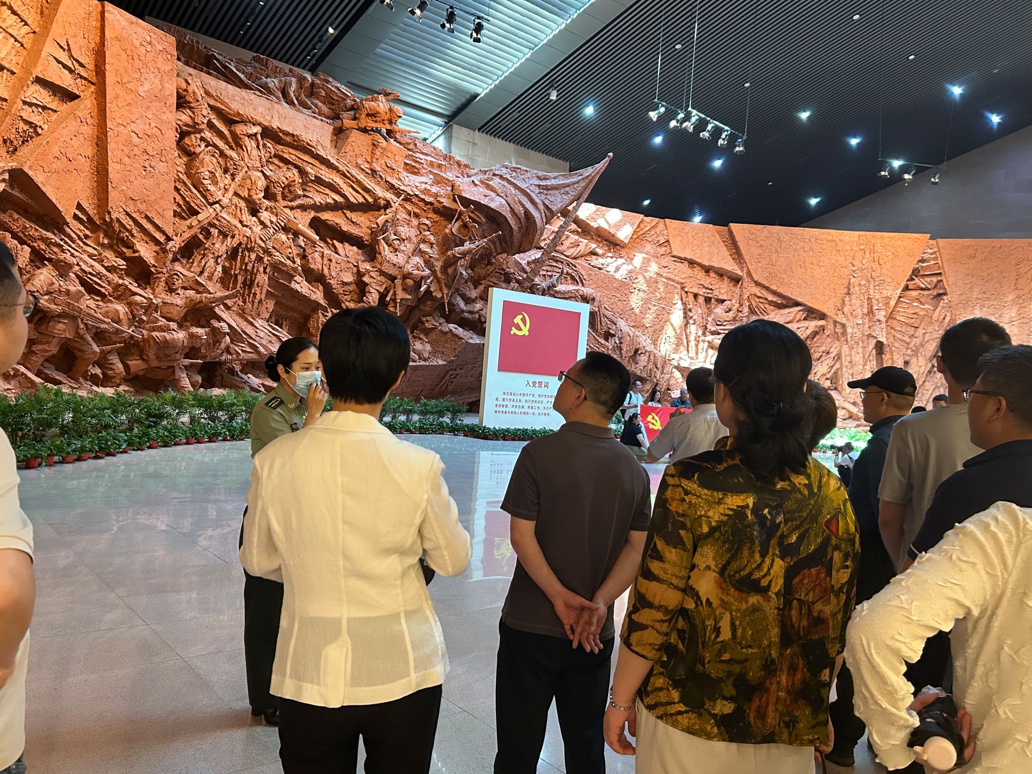 渡江战役纪念馆由五角星胜利塔、总前委群像和纪念馆主体建筑组成,气势宏伟,庄严肃穆。在展馆中,学院教师党员依次参观了战前形势、战役准备、突破江防、战役胜利等展厅。一件件历史文物、一幅幅革命影像、一帧帧老照片,生动展示了渡江战役全过程。教师们重温了百万雄师过大江的历史,震撼于“打过长江去,解放全中国”的激昂气势,被革命烈士英勇无畏、前仆后继的事迹和精神所感动,被坚定不移的革命理想和信念所感染。