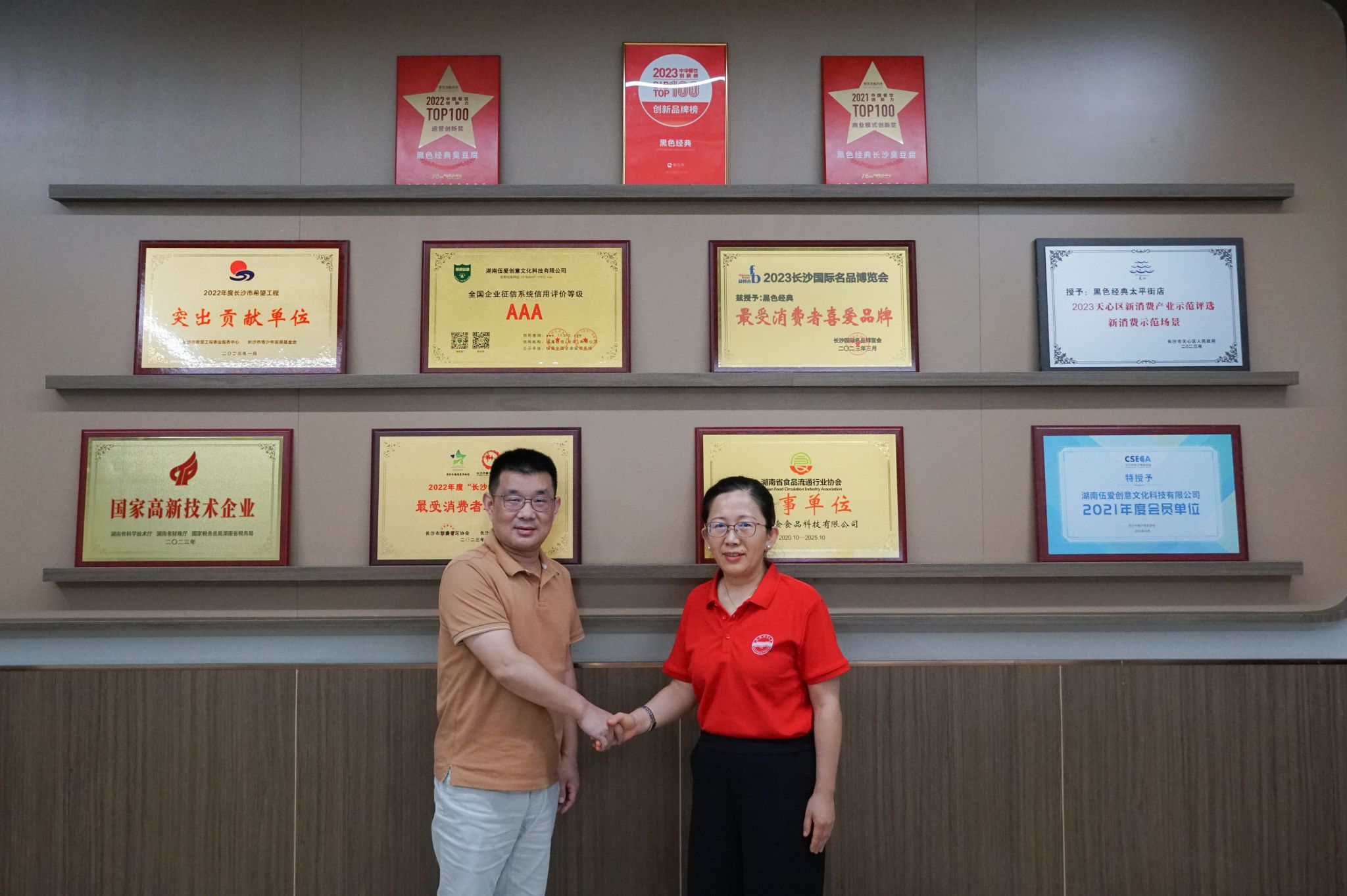湖南伍爱创意文化科技有限公司董事长、我校2008届优秀校友钱勇军对365电子娱乐官方网站师生一行的到访表示热烈欢迎,并就创业历程、企业发展、企业文化和未来展望等方面向我院师生做了详细介绍,特别介绍了黑色经典臭豆腐成功破圈之路,使在场师生对企业文化、主要产品、建设规模和在食品领域的创新成果有了更深入的了解。接着,李艳就学院整体情况进行简要介绍,并希望未来在大学生就业实习、科研创新等方面促成校企合作,双方达成一致意见。随后,双方在《共建合肥工业大学大学生就业实习基地协议书》上签字。最后,师生一行参观公司运营部,现场试吃最新产品,进一步了解公司主营业务和文化。
