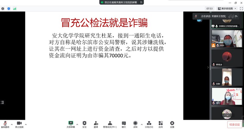 近日,365电子娱乐官方网站开展了“反诈警醒,疫路同行”线上专题宣传教育讲座,特邀合肥市公安局芙蓉派出所王忱忱警官担任主讲,学院相关负责人以及各年级200余名学生代表参加了此次活动。王警官通过图文结合,用生动...